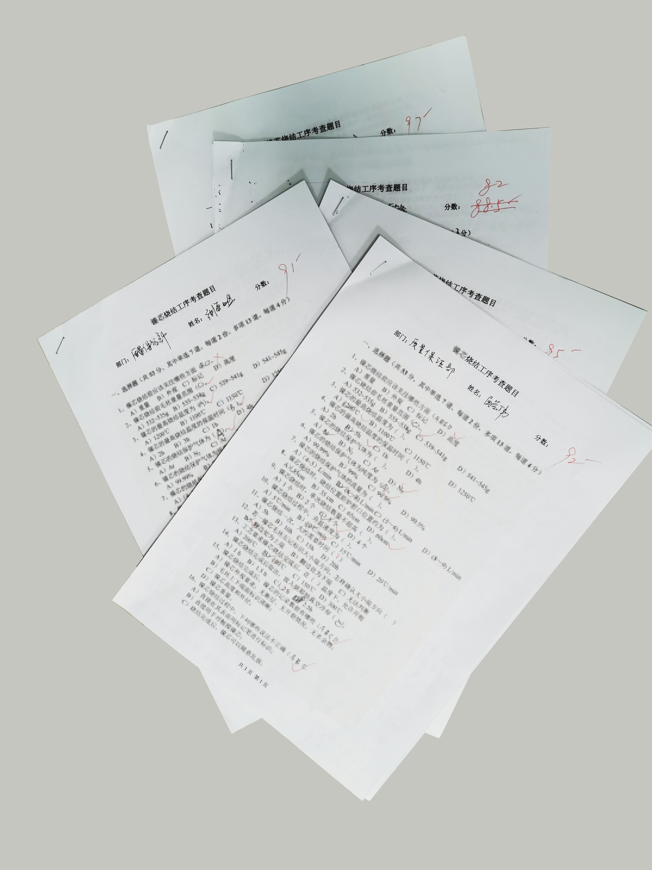 為了提升過(guò)程質(zhì)量,促使過(guò)程控制人員及操作人員熟知并掌握零件生產(chǎn)過(guò)程的關(guān)鍵點(diǎn),8月5日,公司組織檢驗(yàn)人員、操作人員進(jìn)行了燒結(jié)工序的質(zhì)量控制點(diǎn)考試??键c(diǎn)涉及生產(chǎn)過(guò)程的人、機(jī)、料、法、測(cè)等六個(gè)方面,使得從事燒結(jié)工序的操作人員與質(zhì)量控制人員對(duì)本工序的關(guān)鍵點(diǎn)及注意事項(xiàng)進(jìn)行了一次全面的復(fù)盤,為后期開展的燒結(jié)工序取得良好的過(guò)程控制奠定基礎(chǔ)。