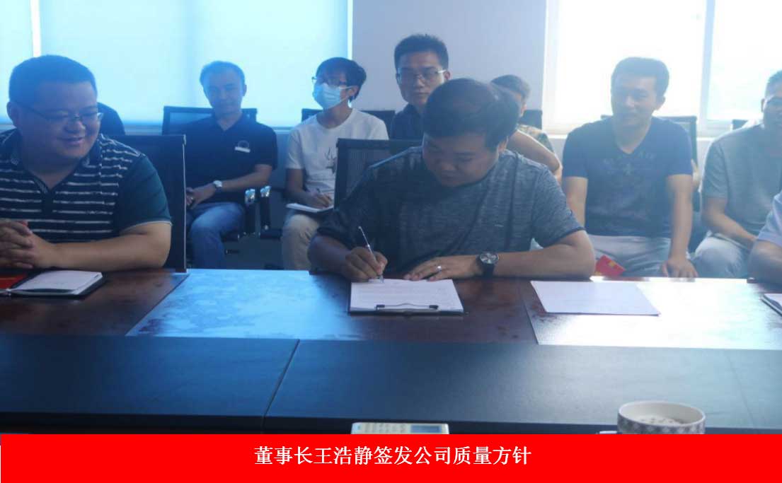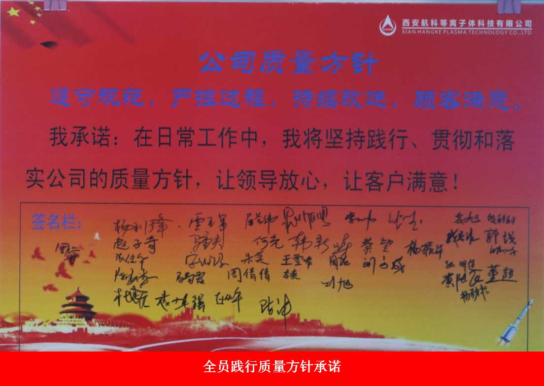 在舒緩的音樂聲中,公司董事長兼總經(jīng)理王浩靜簽署和批準(zhǔn)了公司的質(zhì)量方針,標(biāo)志著質(zhì)量方針正式發(fā)布和實(shí)施,意味著西安航科吹響了質(zhì)量管理的號(hào)角,公司的質(zhì)量管理邁入了新時(shí)代。在副總經(jīng)理兼管理者代表?xiàng)罾h帶領(lǐng)全體員工向董事長兼總經(jīng)理王浩靜承諾:“我承諾,在日常工作中,我將堅(jiān)持踐行、貫徹和落實(shí)公司的質(zhì)量方針,讓領(lǐng)導(dǎo)放心,讓客戶滿意!”,在鏗鏘有力的音樂聲中,全體員工在宣誓板簽下了自己的承諾,表示在日常工作中將嚴(yán)格遵守公司的質(zhì)量方針,為公司質(zhì)量發(fā)展貢獻(xiàn)自己的一份力量。