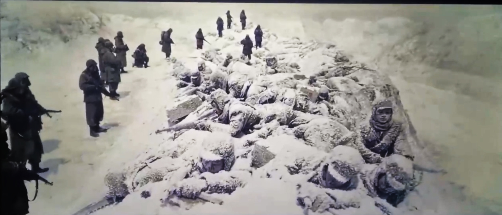 面對武器和其他裝備優(yōu)良的美國軍隊,中國人民志愿軍戰(zhàn)士體現(xiàn)了服從命令視死如歸、凍成冰雕也不退縮的革命精神。面對“冰雕連”的烈士們,美國人由衷的向他們行了個軍禮。