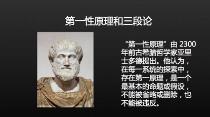 第一性原理是亞里士多德提出來的。亞里士多德認為,在每一個體系的探索中,都存在第一性原理,存在基本的命題和假設。