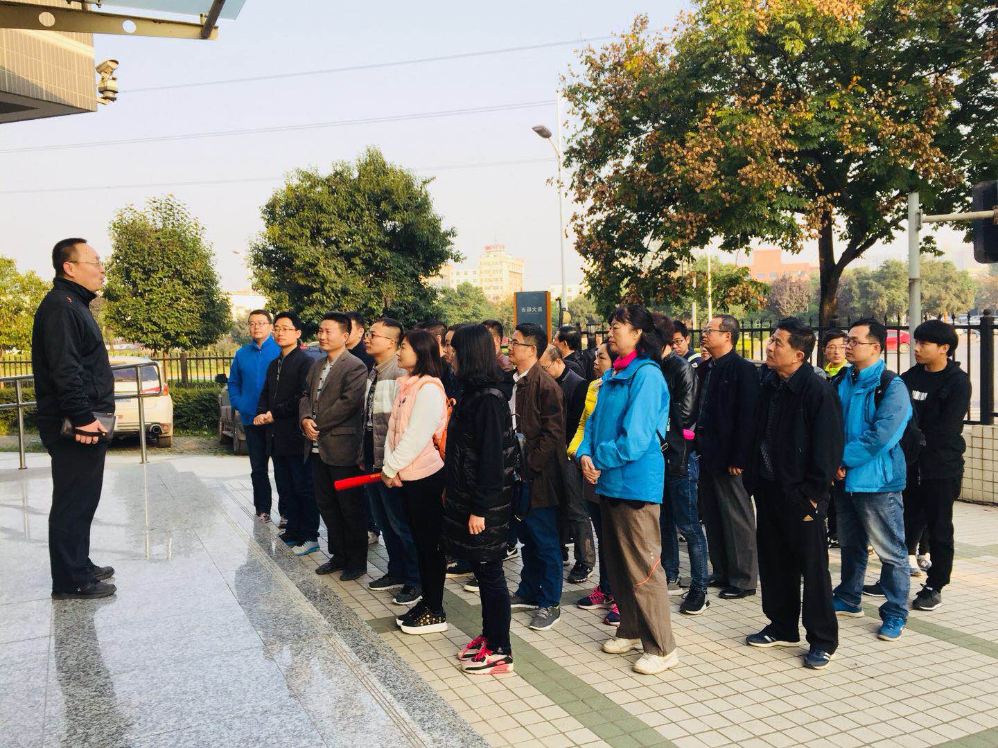 抵達(dá)青華山山腳下后,總經(jīng)理助理兼綜合管理部部長譚鈺琪介紹了青華山風(fēng)景區(qū)的基本概況及爬山路線,著重強(qiáng)調(diào)了安全事宜,隨后帶領(lǐng)大家做了登山前的熱身活動(dòng)。